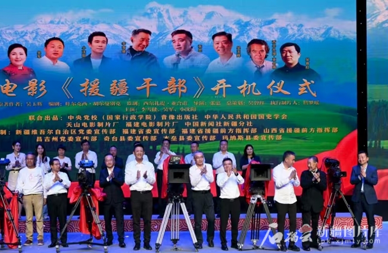 根据福建援疆干部吴玉辉同名小说改编的电影《援疆干部》(现改名为《阿克达拉》)开机仪式在昌吉市举行(2023年9月8日摄)。
