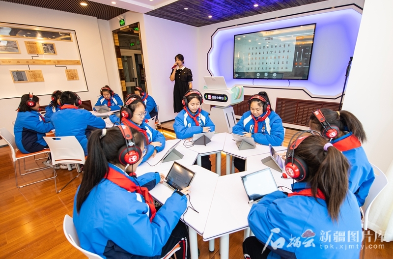 昌吉市“泉昌情·刺桐国学书院”里东启网,昌吉市第二中学学生在有声朗读训练空间朗读古诗词(1月12日摄)。何龙摄