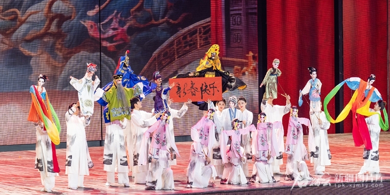 1月27日晚,《欢乐天山·中华情》2025年新疆与援疆省市电视春节联欢晚会在新疆卫视、兵团卫视首播。图为演员在表演杖头木偶戏《偶艺东方》。何龙摄