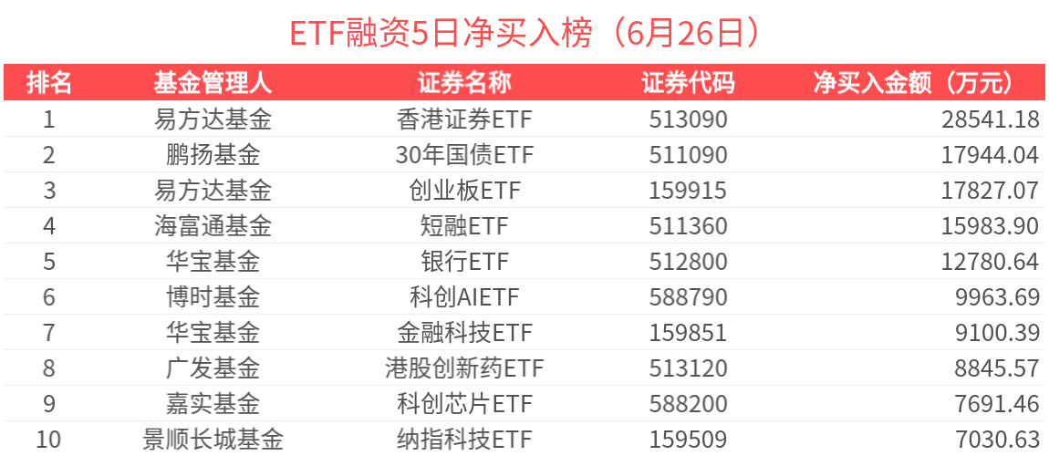 2025年6月26日,共223只ETF基金获融资净买入,26只ETF基金融券净卖出。融资净买入金额超500万元的有52只,短融ETF(511360.SH)、银行ETF(512800.SH)、纳指科技ETF(159509.SZ)、中概互联网ETF(513050.SH)、创业板50ETF(159949.SZ)杠杆资金显著流入云策略,分别净流入1.47亿元、1.02亿元、4850.74万元、4355.55万元、4034.00万元。