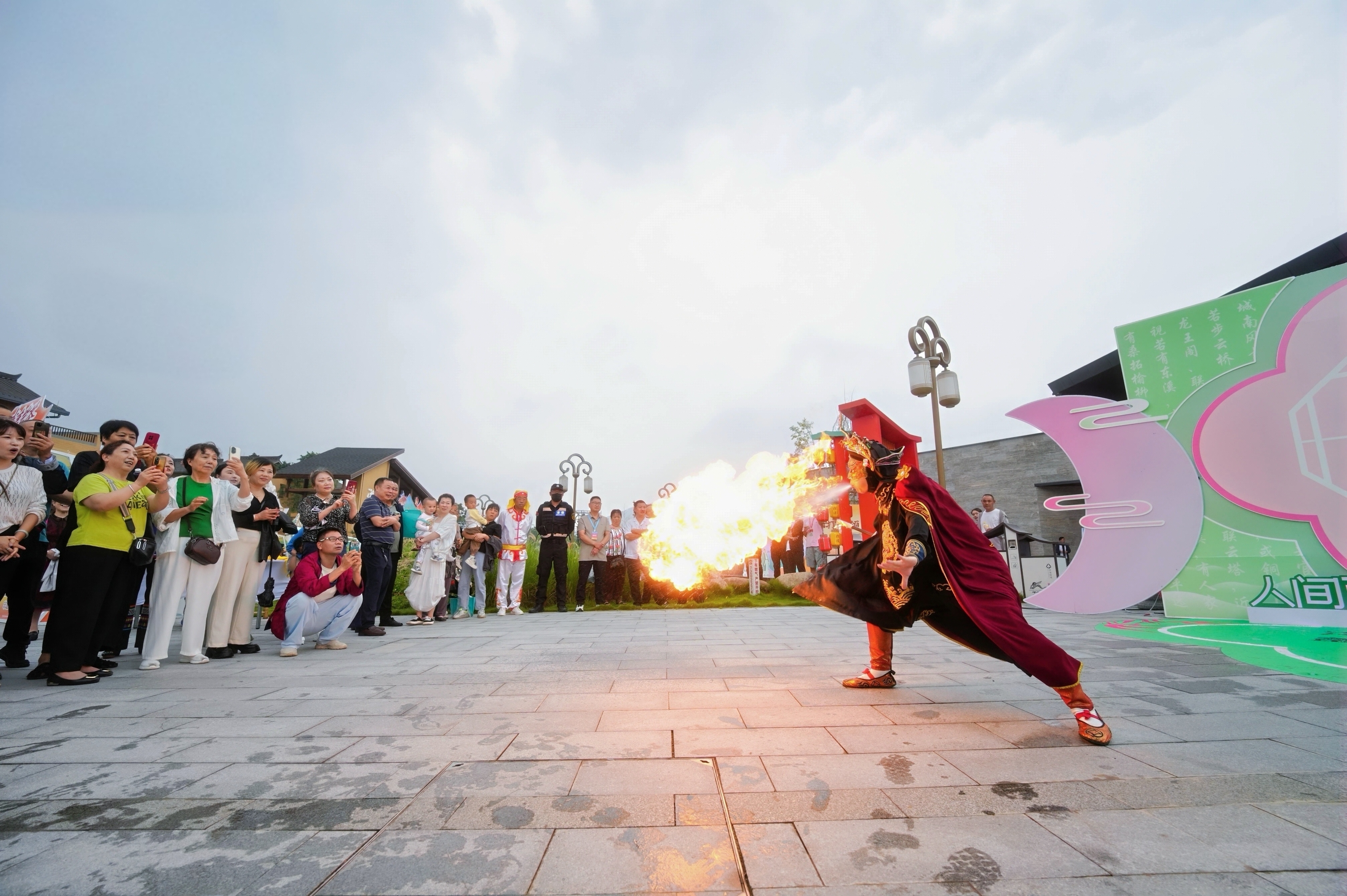 启动仪式现场,光影交错,气氛热烈。非遗瑰宝《大乐·仓山》震撼开场,古老的韵律与现代舞姿翩跹共舞,更有非遗绝技“火壶”表演划破夜空,引爆阵阵喝彩。随后,《天府蜀韵》、黄梅戏《天仙配》、武术《武韵华章》、彝族舞蹈《彝纹》等精彩纷呈的节目接连登场,不仅是对非遗的致敬,更是一次充满创意的时尚表达,向八方宾朋发出了“千年一面,中江见面”的热情邀约。